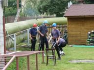 Kluci ze Strašova předvádí poctivě spojené sací vedení.