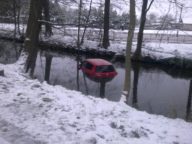 Červené Suzuki Swift napříč kanálem.